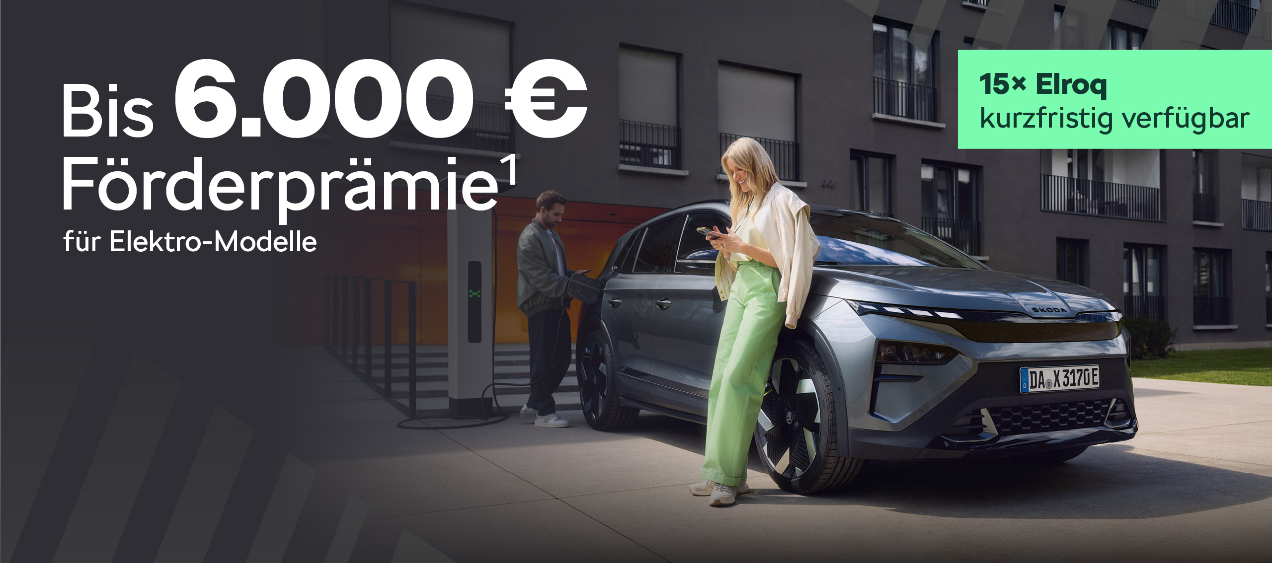Ab sofort profitieren Privatkunden beim Kauf oder Leasing eines neuen Škoda Elektrofahrzeugs von der neuen staatlichen Förderprämie. Rückwirkend zum 01.01.2026 können Sie beim Umstieg auf ein vollelektrisches Modell – etwa den Škoda Enyaq oder den neuen Škoda Elroq – bis zu 6.000 € Zuschuss erhalten. Das macht den Einstieg in die E‑Mobilität jetzt noch attraktiver.