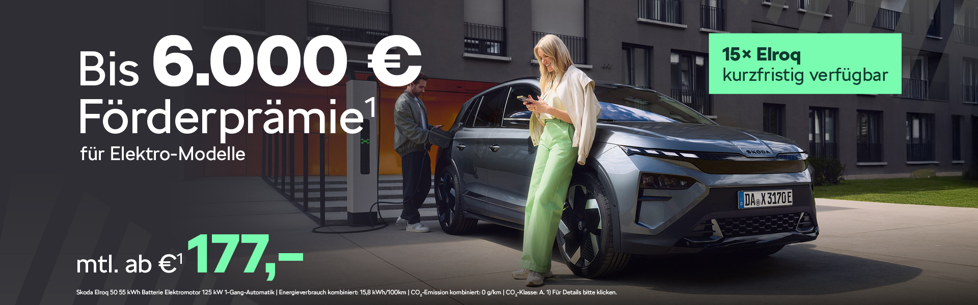 Ab sofort profitieren Privatkunden beim Kauf oder Leasing eines neuen Škoda Elektrofahrzeugs von der neuen staatlichen Förderprämie. Rückwirkend zum 01.01.2026 können Sie beim Umstieg auf ein vollelektrisches Modell – etwa den Škoda Enyaq oder den neuen Škoda Elroq – bis zu 6.000 € Zuschuss erhalten. Das macht den Einstieg in die E‑Mobilität jetzt noch attraktiver.